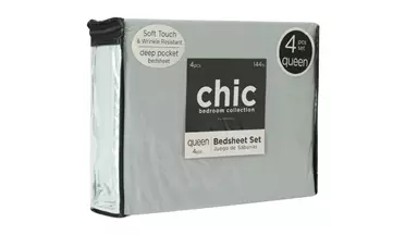 SET DE SÁBANAS Y FUNDAS CHIC GRIS CLARO QUEEN
